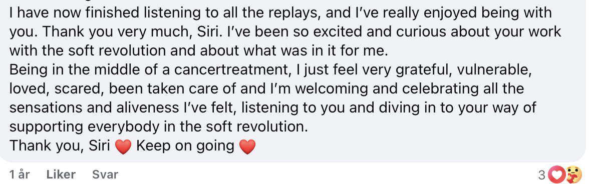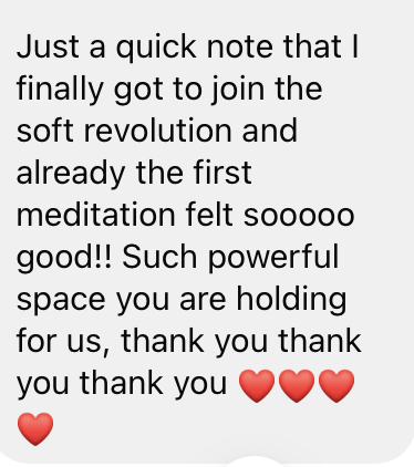 Inside Soft Revolution VIP, you’ll join me behind the scenes of creating this movement while receiving intimate coaching and real-time support as your own edges, fears, and breakthroughs arise.